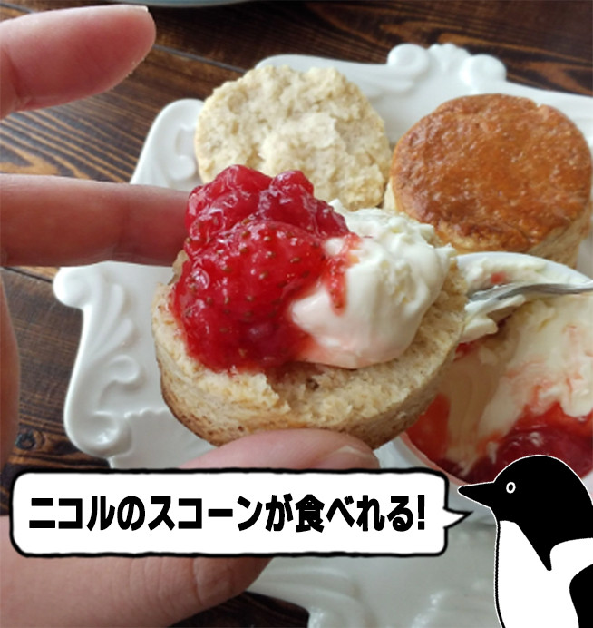 いつものホットケーキが乗っているところのニコルさんのスコーンなどの焼き菓子が乗ってきます!