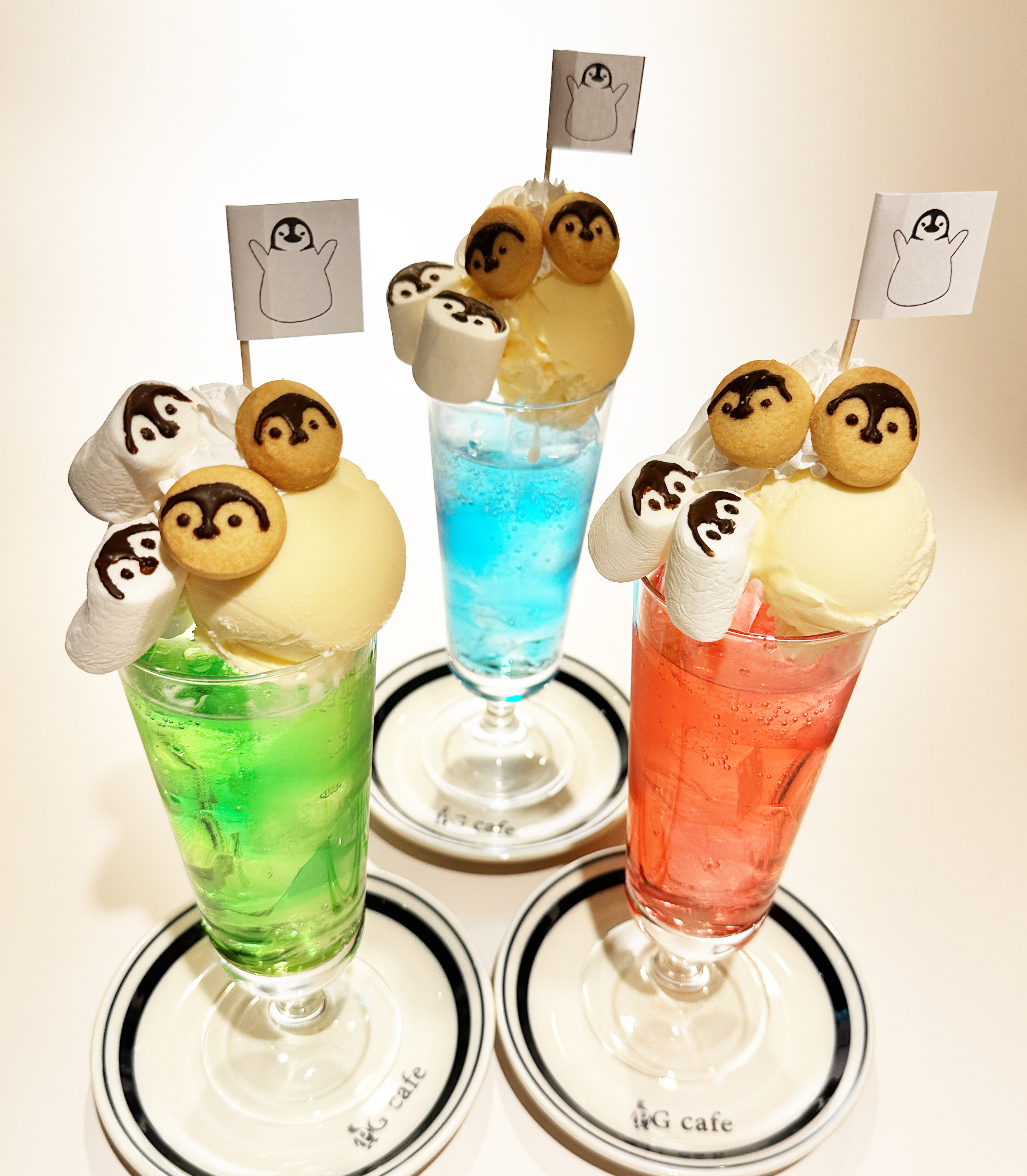 見た目爽やかなクリームソーダです!アイスクリームの上にはホイップやクッキー、マシュマロ!