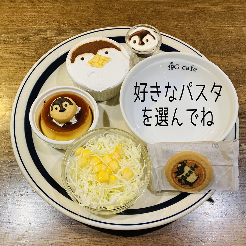 プレート②にはペンギンドーナツが乗っています!お写真の感じになります。こちらもお好きなパスタをお選びいただけます。