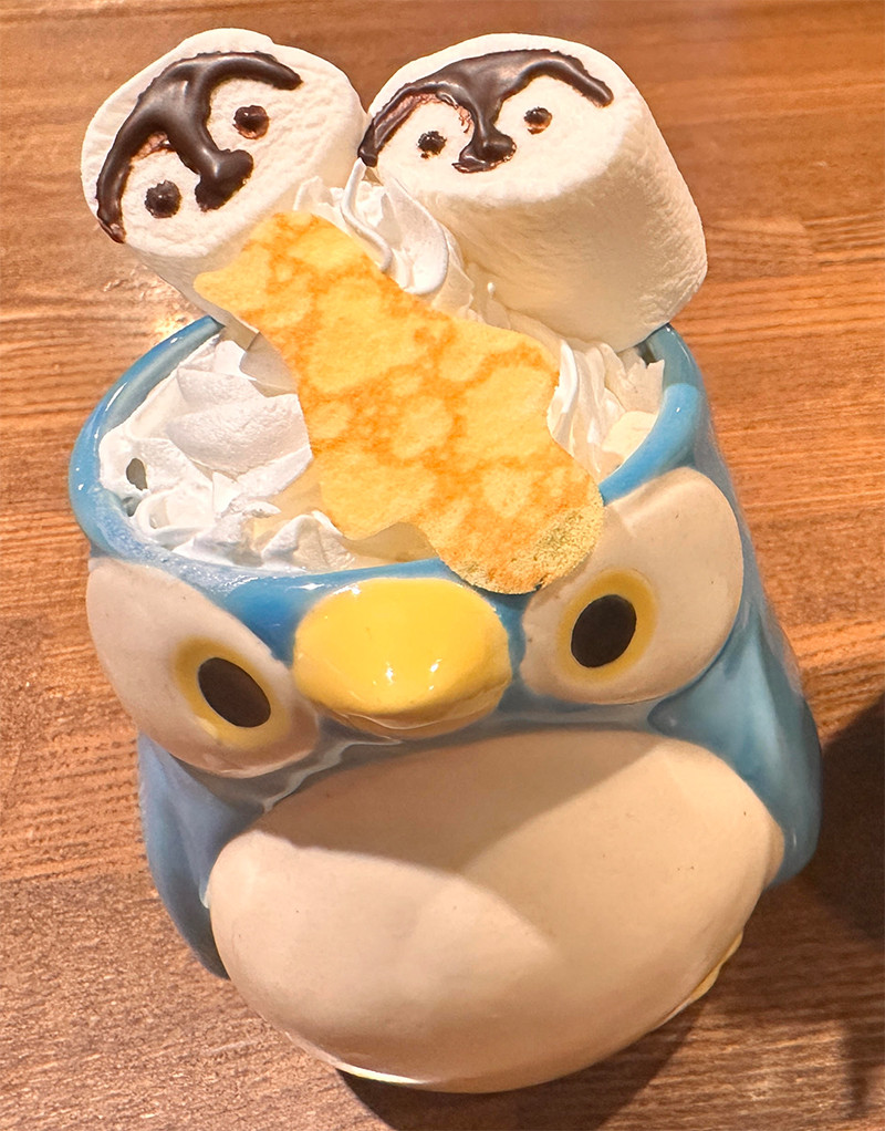 牛乳を泡立てた上にはいろんなペンギンのアートが!